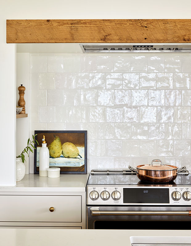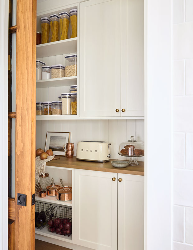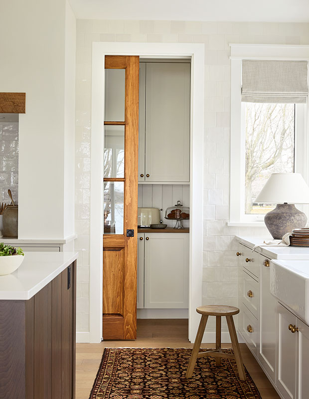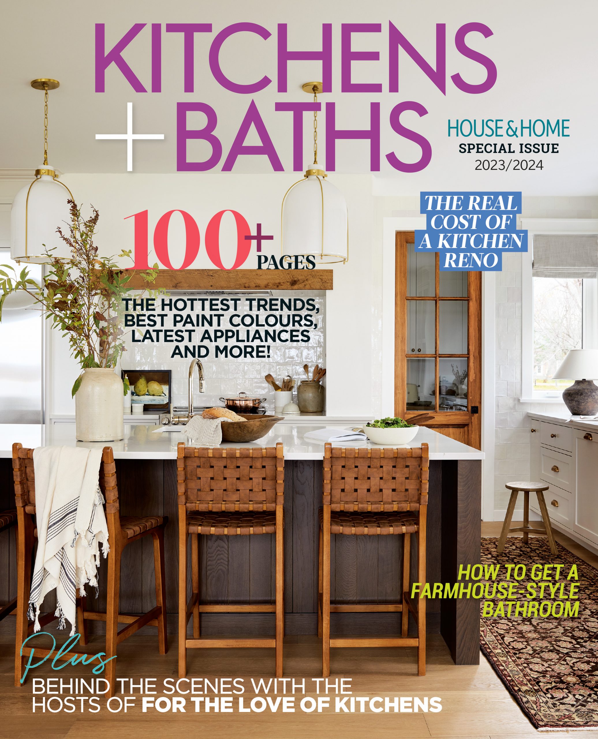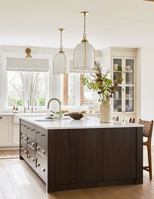 Présentée dans House & Home, cette cuisine de style farmhouse moderne se démarque grâce à un îlot central en chêne massif, mis en valeur par une teinture foncée riche et de subtils détails en shiplap.